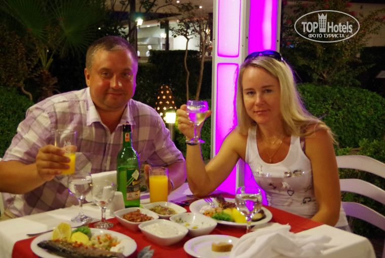 Отличный отель золотая середина для тех кто не хочет сильно переплачивать . В Турции в первый раз поэтому особо сравнивать не с чем полагались на отзывы друзей которых знаем лично которые были в этом и других отелях не по одному разу ! Отдыхали вдвоем парой с 11.09. по 19.09. 2014 заплатили 64000 вместе с топливным сбором . Впечатление об отеле отличное ! Расположен в самом КЕМЕРЕ для нас было очень удобно вышел и ты в городе не надо ни куда ехать на маршрутке городская суета не смущает и не мешает совсем все рядом кафе магазины торговые центры и т.д. Заселили как обещали к 14.00 по местному времени персонал вежливый и отзывчивый . Номер сразу же понравился оформлен в современном стиле не большая лоджия с видом на море и на город на 3 ем этаже убирались каждый день бельё меняли раз в три дня Территория отеля не большая но все размещено очень удобно и компактно большой бассейн горки детский бассейн крытый бассейн море сто метров несколько баров на открытой территории рыбный и итальянский рестораны лобби круглосуточный бар в самом отеле на первом этаже .Питание для нас отличное по системе ультра всё включено еда разнообразная всего не описать и не перепробовать за эти дни, дают мясо курицу телятину индейку море салатов супер выпечка и конечно же алкоголь пиво вино виски водка коктейли всего не перепить что казалось бы нужно еще , конечно в этом отеле не подают деликатесы типа омаров крабов но мы считаем что этого меню вполне достаточно с верхом Если хотите деликатесы типа осьминогов и омаров вам не сюда а в другой отель у которого цена будет тысяч 100 за эти дни пребывания как у нас Территория отеля очень чистая ухоженная много зелени пальмы лужайки в принципе что хотели то и получили размер у отеля мы считаем средний около 350 номеров не маленький и скучный и не большой как муравейник вообщем у нас отдых прошел на отлично .Много в отеле отдыхает немцев французов других европейцев мы считаем что немцы народ практичный умеют считать деньги да и в плохой отель они ни когда не поедут . Некоторые пишут в номере не дают халат нет мыльницы в ванной но лично для нас это какие то не понятные придирки Море экскурсий только не скучай ! В отеле отличная не навязчивая анимация если вы человек активный вам не дадут скучать с утра до ночи . Вообщем нам понравилось рекомендуем тем кто хочет именно 5 звезд и не знает куда поехать в первый раз за средние деньги ! Все было круто думаю что приедем сюда еще раз ! Вадим и Лена ТВЕРЬ !