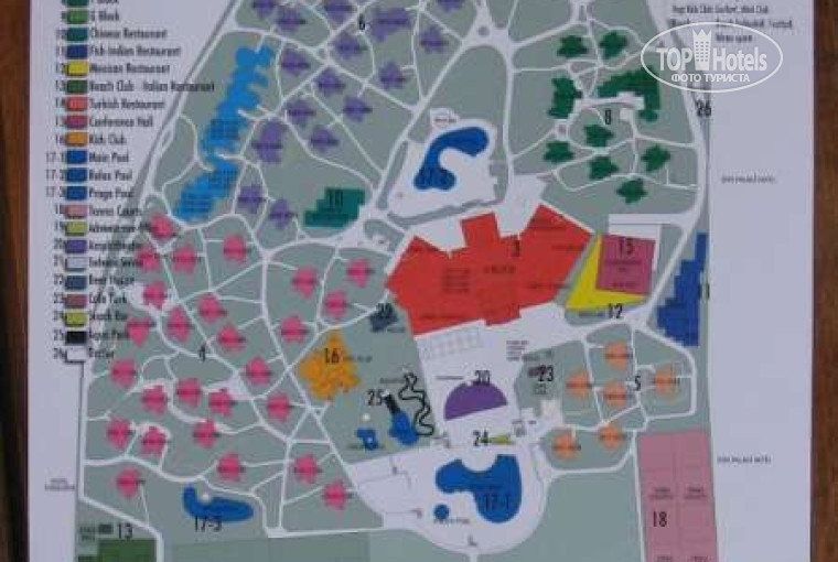 -в отеле отдыхает очень много турков (из Стамбула, Трабзона и т. д.). Их очень много, больше половины отдыхающих, для них это как для нас Сочи. В принципе никаких проблем это не создает, за исключением следующего момента. Т. к. они бронируют места напрямую в отеле, то говорят, к примеру, что ему нужен номер в гл. здании (т. н. "отель") на втором этаже с видом на релакс-пул (или на море). А наши тур-операторы бронируют только с разделением бунгало-отель. Мы на это попали, оказывается в этом здании 2 отеля: собственно гл. здание с видами на море и бассейны, и второе - у дороги. Но это беда не отеля, а наших турагентств.