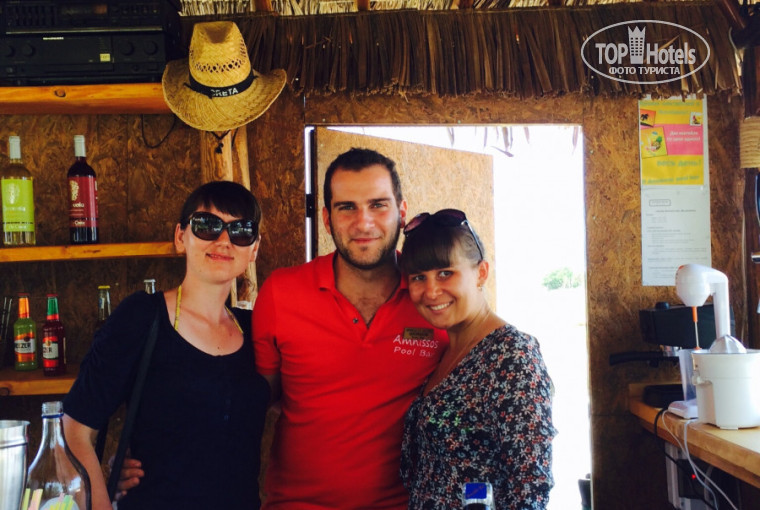 Персонал. В целом персонал отеля очень приветливый. На рецепции есть девушка Мария, она практически не говорит по-русски, но на ломаном английском вполне можно объяснить что вам нужно. Дэспина (темная, высокая девушка) неплохо говорит на русском. На кухне персонал не особо улыбчивый. Меня это не особо напрягало. В основном мы приходили покушать и поспать. Что касается анимации..... Скажу так, ни разу ее не видела в силу отсутвия на территории отеля с 10 утра до обеда, приходили в 18.00. Конечно...... ИЗЮМИНКА ОТЕЛЯ БАРМЕН- ГЕОРГИЙ! Очень обаятельный, привлекательный, приветливый молодой человек. Мне кажется, что только ради него стоит посетить данный отель. ( Шучу) :-)