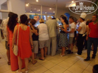 Еда в гостинице, в общем, была не очень. Из мяса - только курица и противное соевое мясо. Колбасы были тоже соевые - есть не возможно. Из рыбы была только селедка, причем ее варили и жарили - до этого я никогда не ел вареную и жареную селедку - это полное Г. Салаты были из одних и тех же ингредиентов (помидоры, огурцы, перец и зелень) в разных пропорциях, заправленные каким-то кисловатым соусом. Не было для заправки салатов ни оливкового, подсолнечного масла, ни майонеза. Творог сухой и кислый. Понравилась картошка в мундире, вкусный рис, один раз были тушеные баклажаны - тоже вкусно. Для детей в ресторане было только молоко с сухими завтраками, кислые йогурты и картошка фри, никаких каш, никаких пюрешек. Из фруктов только арбузы (сладкие, вкусные), дыни (безвкусные), апельсины и грейпфрут и все, больше ничего. Было много сладостей к чаю, я бы даже сказал, что перебор с количеством, разнообразием внешнего вида и однообразием вкуса). Алкоголь особо не употребляли, но все продегустировали - пиво в отеле хорошее, вино и белое и красное - разбавленный порошок, соки - химия полнейшая, коктейли однообразныЙ), водка - как водка. Во время обеда и ужина большая очередь за едой (см. фото). Иногда не было вообще места, чтоб поужинать или пообедать, иногда не хватало столовых приборов. В ресторане полная антисанитария, приборы грязные, на полу грязь (см. фото). Ресторан в данном отеле - это самый большой и главный минус, но не единственный). Если вам важно качество и разнообразие питания, то этот отель вам точно не подойдет.