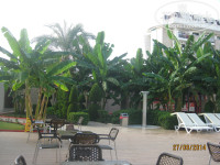Всё утопает в зелени, и пальмы, и пихтовые, и гибискусы…а горы! Как красиво, когда гора утопает в воздушном облаке. Все 12 дней мы любовались этой красотой. Сама территория небольшая, но уютная. Приятно было вечерами гулять. До моря буквально 1 минутка, по подземному переходу. В подземном переходе подсветка, расслабляющая музыка, и прикольное оформление.