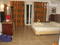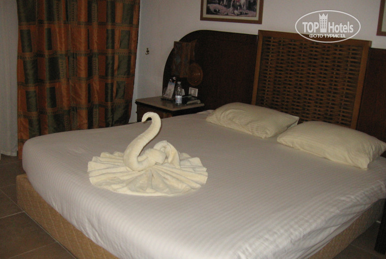 Номер запрашивали с видом на сад, вид был пальмы и забор разделяющий территории отелей.Прочитала тут отзывы ,что у некоторых были номера без балкона,только с окошком,нам же предоставили хороший номер.Честно я даже не ожидала.Большой,комфортный,жк-телевизор,диванчик,большая кровать,холодильник,он же мини-бар,в котором всегда была вода,кондиционер,который настраивался на любую температуру и даже ставился на таймер,чтобы засыпать в холодке,и спать в тепле и плюс просторный балкон.