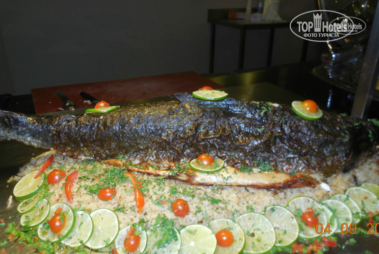 Обеды и ужины: на улице всегда гриль-меню, много мяса, рыбы, овощей, фруктов, зелень, закуски (красиво сервированные как для фуршета - порционно, в рюмочках, и в виде канапе) и т.д. даже самый привередливый человек найдет, то, что будет ему по вкусу. Работает два больших ресторана: Зодиак (сюда можно с детьми) в "Зодиаке" меню намного разнообразнее и выбор больше, но в период нашего отдыха в отеле было процентов 50 арабов, и их «своеобразное» поведение…. характерное этой нации…напрягало и возмущало (где посидели арабы там бардак, не в обиду египтянам, но это факт). Ресторан Нефертити (с детьми старше 12 лет) здесь тишина и покой и нет детей на столах в памперсах. Все спокойно, чисто, мест много, официанты очень внимательные, быстрые и расторопные (для Египта это нонсенс, мы знаем т.к. уже были в Египте) практически все знают русский, но советуем вам выучить несколько слов на арабском, это будет хорошим бонусом, арабы очень любят, когда с ними говорят на их языке (хотя это все любят).