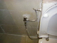 Ремонт везде — это кафельная плитка в ванной, местами замазанная шпаклевкой или краской, какая-то абстракция, напоминающая шахматную доску в комнате. Вода в душе ежеминутно «скачет» от горячей к холодной и совсем не спешит утекать в слив, который забит не только волосами, но и лепнями краски.
