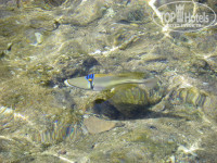 Вход в воду по ступенечкам или нырять, глубина сразу 30 метров, дна не видно. Почти всегда волна. Риф хороший, встречали черепах, мурен, барракуд, скатов.