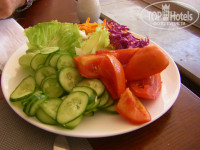 Блюда приготовлены прилично, иногда вкусно, но не по-ресторанному. В общем соответствуют общему уровню отеля: дешевая рыба пангасиус, только раз дали куриное филе, обычно кусочки с костями и шкурками, мясо норовят заменить фаршем, а все недоеденное замешать в салаты к следующей трапезе. (лучше обходить стороной эти замесы) В этом отеле не найдете никакого мороженого, пышек, пиццы, морепродуктов и соков (только разведенный порошок).