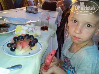 ОТЕЛЬ КОНЕЧНО КРАСИВЫЙ,ВЫЛОЖУ ФОТО САМИ ПОЙМЕТЕ,ВРОДЕ ЧИСТО УБИРАЮТ МОЛОДЦЫ СТАРАЮТСЯ,НОМЕР ТОЖЕ УБИРАЛИ КАЖДЫЙ ДЕНЬ И С ЧАЕВЫМИ И БЕЗ. БЫЛА ДО ЭТОГО ОТЕЛЯ В ДВУХ ОТЕЛЯХ ПРИМЕРНО ТАКОГО -ЖЕ УРОВНЯ,КЕМАЛ- ЛУЧШЕ ВСЕХ. ЕДА КАК В ТУРЦИИ" ОДИНАКОВАЯ "НУ МЯСО БЫЛО И КУРИЦА И ГОВЯДИНА ,РЫБУ БОЛЬШУЮ ЖАРИЛИ ВРОДЕ ТУНЕЦ ИЛИ СКУМБРИЯ НЕ ПОНЯТНО,БЫЛИ И ПРЕСЛАВУТЫЕ ПЕЧЕНЬ ,ЖЕЛУДКИ И ПОЧКИ,О КОТОРЫХ МНОГИЕ ПИШУТ,ЗА 10 ДНЕЙ 2 РАЗА ИХ ВЫСТАВЛЯЛИ НУ ПЕЧЕНЬ ЕЩЕ МОЖНО ЕСТЬ,НО ПОЧКИ ....Я НЕ ЕЛА. ФРУКТЫ ВКУСНЫЕ ОСОБЕННО ВИНОГРАД И АРБУЗ.СЛАДОСТИ НА ОДИН ЛАД ТОЛЬКО ЦВЕТА И ФОРМА РАЗНАЯ,НО ВСЕ ЖЕ СЛАДКОЕ ВСЕГДА ВКУСНОЕ.