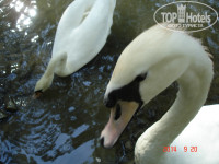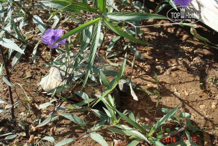 Территория огромная. Есть футбольные поля, теннисный корт. Много зелени: цветы разные, деревья, сосны, пальмы. Видели на территории белку, черепах, кошек и котят. Живности на территории много. Как раз то, что нужно детям.