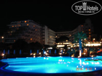 Основное здание посередине. Ресторан, в котором кушают, рядом, бассейн детский с горками, основной бассейн, до пляжа минут 5 идти, до зоопарка 2-3 минуты. Все рядом. Только если в амфитеатре или в баре будет музыка, то все слышно будет.