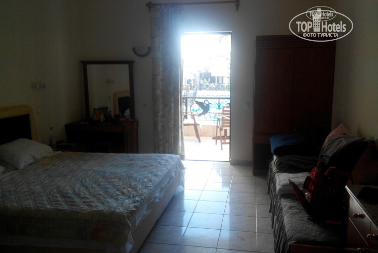 По сути три категории: бельэтаж, вид на море (их мало), вид на бассейн. Номера не имеют единой плошади: меньше, больше, два этажа.