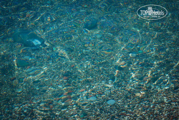Вода в море чистейшая и прозрачная. Пляж, да, галечный. Заход по мелкой гальке, валуны на глубине. Два лежака и грибок - 6 евро в день. Мы редко брали, т.к. далеко от воды, на полотенцах у воды в основном отдыхали. Пляжные полотенца в отеле бесплатно, только залог в 10 евро на рецепции оставляете за каждое, по выезду вернут. Обмен на свежее - 1 евро.