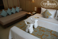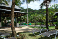 Отель выше всяких похвал! Быстрое заселение с приветственным соком, выдают по карточке от номера на человека (не одну на двоих, как в некоторых отелях), в ваучере была информация о депозите в размере 1000 бат, но по факту его не взяли, до номера багаж за вас несут, везут на каре. За размещение 4, т.к. заселили нас молодоженов изначально в номер с видом на стену, но на следующий день через отельного гида нам его без проблем поменяли на равноценный , но уже с видом на закат. Бронировали Джакузи Делюкс в корпусе через дорогу, там более новый номерной фонд: посвежее, посветлее и посовременнее. Те, кто будет бронировать Джакузи Делюкс имейте ввиду, что есть немало неудачно расположенных номеров с видом на стену соседнего корпуса. В номере огромный шкаф-купе с большим количеством вешалок для одежды, но минимальным количеством полок, бесплатный сейф, чайник, бокалы, стаканы, штопор, зонты, тапочки, сланцы, халаты, сушилка для белья, отличный фен. Ежедневно пополняли чай, кофе, сливки, сахар, воду, туалетную бумагу, ежедневно меняли все полотенца, в том числе пляжные (они размера XXL). Ванная в идеальном состоянии, все блестит, с удовольствием принимали ванну с джакузи, гель, шампунь и лосьон для тела в больших флаконах с дозаторами, их тоже пополняют (свои брать не стоит). На балконе пара легких шезлонгов, можно загорать не выходя из номера. Удобная большая кровать, рядом софа. При заселении из полотенец крутят слоников, кальмаров и прочую живность, потом уже нет, не смотря на ежедневные чаевые. Также при заселении выдаются талончики на пару бесплатных коктейлей в 2 барах отеля. У нас в номере на одной из прикроватных тумбочек жили мини-муравьи и один раз из-за унитаза выскочил огромный таракан (будьте бдительны), но это можно списать на близость джунглей. Завтраки в отеле до 10:30, выбор большой, очень вкусный бекон и омлеты - готовят при вас - берете с пылу с жару, делают шейки из ананаса, дыни ( с йогуртом), арбуза, есть выпечка, острая еда, европейская, большое выбор фруктов (не ограничивается ананасом и арбузом). Лежаков на территории было достаточно, основной бассейн любят китайцы (поэтому с утра до вечера там шум-гам), есть бассейн поменьше (прячется среди бунгало), у него почти никого нет,имеется бассейн на крыше нового корпуса (4 этаж на лифте) - с джакузи, которое постоянно включено - божественно, но ближе к закату там может появиться толпа китайцев (рекомендую проводить там время до 17:00). Через дорогу между новым и старым корпусами перейти не проблема, там постоянно дежурит человек-регулировщик. Пляж большой, заход в море напротив отеля мелко, для детей идеально, чтобы дойти до приличной глубины нужно потратить время, были медузы (не забываем быть бдительными), но так как вода прозрачная их видно и можно уворачиваться, хотя о беззаботном купании придется забыть, но медузы там не всегда (как на них найдет), они есть и на соседних пляжах (мы были на 4), где-то их больше, где-то меньше. Ежей, кораллов на пляже отеля не видели, закаты там обалденные, пальмы пышные, территория ухоженная, павлин гуляет, кувшинки цветут - рай в чистом виде. Рядом с отелем есть 7/11, но цены там на порядок выше, чем в других местах (пиво Чанг 0,33 жестяная банка 48 бат вместо 35 бат за тоже самое в 7/11 на пляже Кай Бей). До ближайшего обменника придется прогуляться минут 15, работает с 10:00 до 20:00, при себе имет