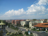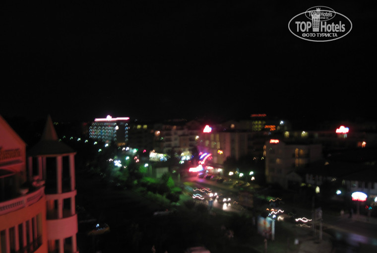 Когда я зашла в номер я сразу перестала жалеть об этих 40 левах. Номер потрясающий! И номер полностью соответствует фотографиям в интернете! Окна выходили на улицу, горы и соседние отели (номер был угловой), днем я в номере почти не бывала, а ночью вид был шикарный! Я была очень рада, что поселили не с видом на море!
