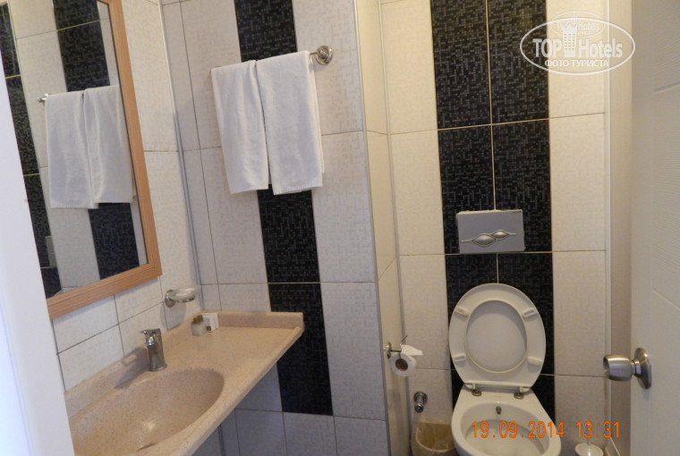 Отдыхали с мужем в отеле с 17.09 - 01.10.2014г.По приезду не было мест и нас заселили в отель рядом 4* , он чисто немецкий.Через две ночи нас привезли в свой отель и после 12 часов заселили по номерам. Нам дали на втором этаже с видом на бар , бассейн. Номер очень хороший, чистый, уютный, светлый. Убирались каждый день и постель меняли почти каждый день,меняли полотенца. В отеле работают все труженики, по первому зову если надо всё делается.Молодцы, так держать. Питание тоже неплохое( ведь это тройка), много овощных блюд,фрукты были каждый день ( арбузы, яблоки, сливы, инжир, пару раз виноград),голодными ни кто не ходил. Но мясных блюд практически не было.Но всё это ерунда, море затмевает всё. Очень теплое и ласковое, пляж изумительный ,песочек мелкий.До пляжа идти с горки минут 7,а с пляжа соответственно а горку. Но нас это не напрягало,очень даже полезно.Ездили на Эфес и Памуккале. Всё понравилось , правда ехать далековато 7 часов.На ресепшине работает замечательная женщина Вера,всегда если обратишься всё подскажет. Отдохнули хорошо, теперь куда нибудь поедем на следующий год. Спасибо всем.