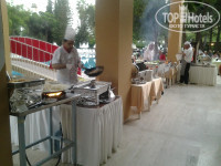 Питание такое,что голодным не останешься!вроде выбор не большой,но всё попробовать так и не удалось))) было: и люля из баранины,и форель гриль,и печень с овощами,и скумбрия на огне,и говядина порционная запеченая,не считая других разных вариантов куриных,мясных и рыбных блюд. Можно поесть в отеле,можно на пляже. Хорошо устроен процесс откармливания туристов)) Алкоголь вполне приличный. После такого полноценнорегулярного питания нам даже понравилось ходить до моря пешком и,действительно, по хорошей,зеленой дорожке..хоть какое то движение ..