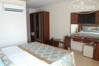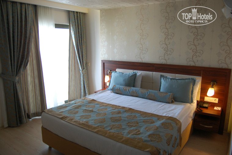 Отель новый, всё блестит, но мне то и дело попадались на глаза неотмытая штукатурка, затирка на плитке и т.п.(отклеившиеся обои над зеркалом в санузле), но это мелочи, на качестве отдыха не сказывается, если вы не зануда, и со временем ототрётся.