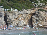 Приветствую всех, кто собирается в этот отель! Отдыхали с 07 по 15 октября с подругой. Привезли в отель рано утром, позавтракали. заселение в 14.00, но мы к этому были готовы, переоделись в комнате возле ресепшена и на море, дабы не терять драгоценное время, ради моря мы в общем-то и ехали. Пляж - это главный плюс отеля! Находится рядом, через дорогу. Сам пляж небольшой, заход хороший, мелкая галька и песок (некоторые заходили в тапочках, но мы и так обходились), лежаки и зонты бесплатно, можно лежать и на пляже, и на пирсе, и на спортивном поле возле пляжа. Но главное, там нереальной красоты скалы! Потрясающе красивые виды, породы камня разных оттенков, маленькие пещерки, бухточка, до которой близко доплыть и куда даже привозят купаться с прогулочных яхт (это говорит о том, что место действительно красивое). Вода в это время года теплая, купаться очень комфортно, причем мы купались как днем, так и утром, до завтрака, и ночью, после дискотеки. Заселили, как и обещали, в 14.00, номер был на 4 этаже. с одной стороны вид на море, с другой на горы. Номер очень простенький, но все работало, а большего нам было и не нужно, там мы только ночевали. Один из минусов отеля, это две оживленные автотрассы с обеих сторон. тихо тут никогда не бывает! Благо, мы были в то время, когда ночью уже прохладно, с вечера остужали комнату кондиционером (нам повезло, электричество работало без ключа), а на ночь плотно закрывали балкон и шторы. Но это не очень спасало от шума. К счастью, мы так уматывались, что потом просто не замечали шума дороги, спали, как младенцы :)) Кстати, соседей слышно тоже отлично, как они храпят, разговаривают, включают воду и т.д., но это вообще присуще многим отелям. Кто чувствительно спит, вам не сюда. точно!
