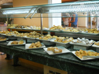 Три ресторана A-la carte: итальянский, рыбный и восточный. Гид Анекс тура Ахмед, сказал что бесплатно по предварительной записи только два из трех на выбор, хотя судя по отзывам должны быть все по разу. Объяснил это тем, что слишком много кушают.))) Были в восточном "Фатима" и итальянском "Траттория". В первом подают несколько видов салатов и жаровню с мясным, но это всё есть и в главном ресторане, а также очень медленное обслуживание, чай и десерт ждать не стали. Во втором было намного вкуснее и разнообразнее: пицца, равиоли, паста различная и вино разливали из бутылок, также и розовое.