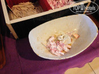 Ресторан отдельная тема: мясо не было вообще, иногда была курица, котлеты делали из того что осталось -мясного, огурцы и помидоры и те- безвкусные и надкусанные ,чай в пакетиках дефицит, кофе заправляли редко - из кофе машины лился кипяток с молоком, масло сливочное редкость за 12 дней давали 2 раза , нарезанное огромными кусками в чашку со льдом,и по вкусу напоминало самый хреновый маргарин, колбасу и сосиски местную не пробавали, т.к. в Турции это есть нельзя не водном отеле. На завтраки - сухие булки, Сухие - в прямом смысле слова завтраки -которые не размокали в молоке ,яйца или супер сухие или суперсмятка, короче есть можно только местные сладости -мокрые тортики, и фрукты (арбуз, дыня, апельсины, мандарины, 1 раз виноград)- народ растаскивал их самыми первыми. Вино в Отеле пить так же нельзя, Российский портвейн вкусней ,пиво кислятина - напоминает Шихан (бармены при этом его еще дают неохотно, всем видом намекая на чаевые). В итоге после 7 дней питания- отравление, съела все запасы своих таблеток, еще и у соседей все забрала. Оставшиеся дни сидела голодала, раз заказывали шашлыки у местных (ОЧЕНЬ ВКУСНО), т. к. от одного запаха столовой отеля тошнило.
