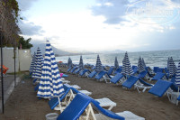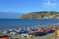 От отеля до центра Алании идти минут 20, до пляжа Клеопатры минут 40. Остановка в 5 минутах от отеля. Проезд 2 лиры (можно расплатиться долларами 1$). На пляж отеля сходили один раз, потом побывав на Клеопатре ходили все остальное время только туда.