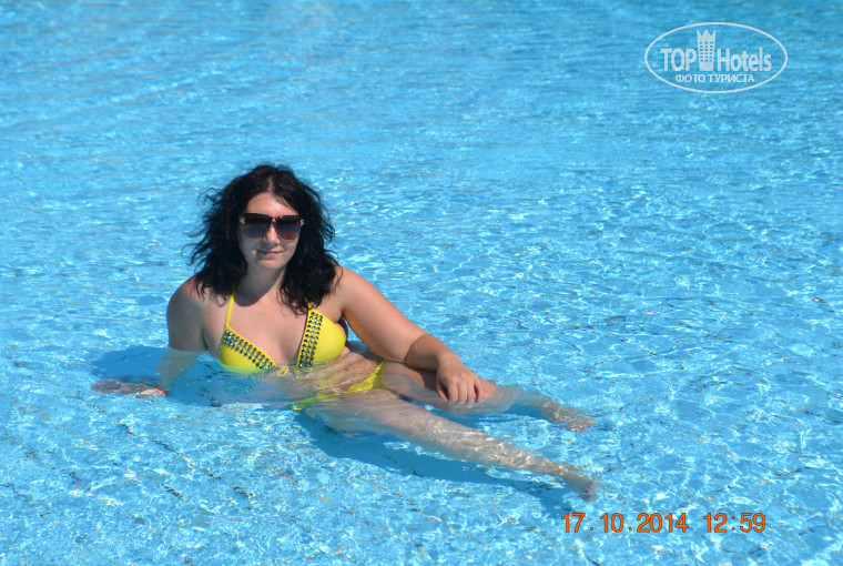 Были в этом отеле в октябре с подругой. Ну что сказать, отель приличный, еда хоть и однообразная,но голодным не останишься, если поискать найдешь вкусненького,сладкого много, выпивки вроде тоже на выбор,-но она ни о чем,лучше брать свое.. сервис хороший,в номерах чисто, на территории тоже красиво,зелень,цветы. Бассейн большой,но холодноватый...море обалденное!