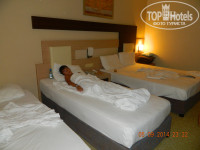 АНИМАЦИЯ. Анимация на немецком преимущественно, на турецком и русский аниматор есть (Анечка). Вообще туристы в отеле в основном из Германии и Европы вообще(в том числе и представители России, живущие в Германии), турки, немного русских. Так что не пугайтесь, если по приезду будет казаться, что в отеле одни иностранцы. Анимация не навязчивая: аква-аэробика, стэп, водное поло, гимнастика, волейбол - днём. В отеле есть игровая комната, где очень недорого можно поиграть в бильярд, настольный теннис, баскетбол, аэрохоккей, гонки, для малышей тоже есть аттракционы. Один жетон стоит 1 доллар. Очень даже приемлемо. По вечерам - детская дискотека в 21.00. Днем работала детская комната. Моему двухлетнему сыну очень нравилось. Для детей перед входом в отель есть игровая площадка, при желании можно с детьми поиграть. После детской дискотеки - анимация для взрослых. Всё как обычно: камеди, мисс и мистер отель, факир шоу, турецкая ночь, бинго, конкурс на лучшую пару отеля, фокусники, однажды порадовали детей - был твистинг (почти каждому ребенку сделали фигурку из шаров). После вечерней анимации (в 23.30) желающие могли пройти на дискотеку отеля. Она есть, хотя гид Аделина (туроператор Пегас) с уверенностью сказала, что на территории отеля дискотеки нет!!! Красиво оформленный зал с баром, танцевальная площадка. Одно НО - желающих почему-то было ооочень мало, да и музыка желала лучшего. Ди джей на просьбы поставить что то другое почти не реагировал. Все бары в отеле закрываются в 24.00. Желающим повеселиться аниматор Архан предлагал почти каждый день посетить какую-нибудь дискотеку в поселке (8 долларов вход) или в Аланьи (около 15 долларов за вход). Архан от начала до конца сопровождал туристов на дискотеку и с нее (автобус бесплатно). Молодец!!! Многие жалуются на анимацию соседнего отеля, слишком громко. Дорогие туристы, Вы же в Турции, стране, которая славится дискотеками и отличной весёлой анимацией. Спать нужно ездить в другие страны!!!