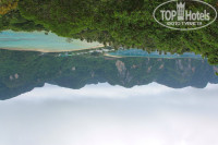 С паром встречают люди, с табличкой отеля, сажают в лодку везут до отеля... Потом ресепшен... распределяют по домикам... Сам отель находиться на горе, прям не его склоне....Площадь отеля огромная...в дллинну наверно от ночала до конца километр точно будет...Например от нашего домика R12 до ресепшен надо было идти минут 5-7...а ведь есть домики которые находятся дальше..