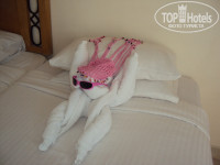 Читаю тут все отзывы и села написать свой, хоть и ездили в этот отель почти год назад. Честно говоря, сначала не впечатлило. Приехали 13 декабря и было очень холодно! Реально ходили в зимних куртках вечером, чтоб не замерзнуть. Так как приехали вечером, заселили сразу. Был шанс получить зеленые браслеты (судя по всему отелю, все гости не в "первый" раз в сети Дессоле), но рисковать не стали. Поэтому мы получили желтенькие браслеты и пошли в номер. С номера вид конечно был не очень! Пальма закрывала весь обзор, но нам было все равно, мы в номере старались не сидеть. Минибар заполняли стабильно, даже если в номере никого нет, ставили соки просто возле дверей. Постоянно пополняли чай и кофе. В номере уборка была нормальная, делали нам всяких зверушек и цветочки из полотенец. В номере мебель старенькая, зато из натурального дерева, полотенца меняли, мусор выносили. Плохо было, что ничего не успевало высыхать, солнце было на другую сторону отеля, а при ветерочке не особо все хотело сохнуть.