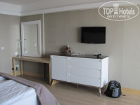 НОМЕР: в отель приехали уже вечером (от аэропорта 40 минут через Бильдиби и Гёйнюк), т.к. мест было много, нас заселили в Хилл без доплат и ожидания. Номер 5830-А на 8м этаже (в предыдущих отзывах писали, что долго добираться, на самом деле на 2х лифтах дорога от первого этажа до номера на восьмом занимает не более 1 минуты). Номер большой, есть всё необходимое для отдыха: 2-спальная кровать, кондиционер, 2 кресла с журнальным столиком около окна (балкона нет, из окна открывается шикарный вид на море, по утрам можно любоваться рассветом), на стене плазма (из российских каналов: первый канал и ТВ3), между спальней и ванной небольшая гардеробная с двумя шкафами и сейфом (с электронным замком), в ванной большая душевая кабина, джакузи и 2 раковины (созданы все условия для пользования одновременно двумя людьми). Бар бесплатный, ежедневно пополнялся пивом (2шт), спрайтом (1шт), фантой (1шт), питьевой водой без газа (2шт), минеральной водой (2шт). За весь отдых бар не пополнялся 2-3 раза, т.к. в момент их прихода мы были в номере, а приходить позже уже никто не будет. Уборка также оставляла желать лучшего, всё удовольствие заключалось в смене полотенец (ежедневно) и постельного белья (через день). Полы не подметали (я уж молчу про мытье). Интернет бесплатный, вай-фай подключаете по номеру комнаты и дате рождения (которую указали в регистрационном бланке). Из номера брал хорошо на планшете, с телефоном приходилось сидеть около окна. Скорость менялась в зависимости от кол-ва подключившихся отдыхающих, но на разговор (напр., по скайпу без видео) вполне хватало.