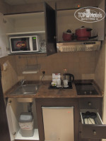 В номере было довольно прохладно, даже без кондиционера. Большая удобная кровать. В прихожей маленькая кухня. Набор посуды и кастрюль. Можно готовить при желании.