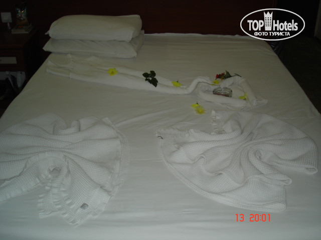 Расскажу об отеле как новичок в индустрии отдыха и туризма в Турции! Мне ужасно повезло с компанией, которая также как и я оказалась в этом отеле, который судя по всему все же претендует на "три плюс"... Очень многое из написаного ув отзывах ранее соответсвует действительности и кошки, и не говорящий по русски ресепшен, и низкое качество спиртного и т.д. Отрадно то, что отель занимает очень благовидное географическое расположение, виды вокруг потрясающие!!! В номерах не до сияния все в чистоте и блеске, но не ужасно, а если оставишь на постеле одну-две турецкие лиры и полотенчики красиво сложат(даже лебедем!). Кухня мг-хм-м..м... скажем так на любителя. Много овощей,соевой колбасы, из мяса-курица, вкуснык сыры, гарнир-картофель и макаронные изделия...все! Море...,море чудесно!!! До городского пляжа десять минут ехать, а свой (песчаный) отсутсвует, не пять звезд!!! 25 октября 2008 года данный отель будет закрыт на капитальный ремонт и превратится в более комфортабельный. Мне бы хотелось увидеть его после ,так как он оставил теплые воспоминания не смотря на многочисленные минусы.