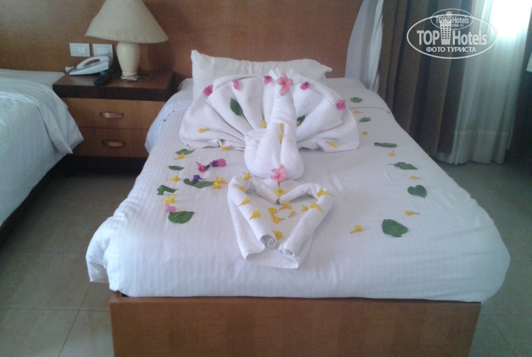 В общем, впечатления от отдыха остались положительными. Кстати, в День рождения в номере нас ждали еще сюрпризы: постель, усыпанная цветами с лебедем посередине и тортик в холодильнике. :)