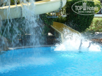 Кстати, по водной горке. Два раза ходил на водную горку (30 метров от главного бассейна), дух захватывает. Супруга несколько раз пыталась меня сфотографировать, но в кадрах одни ноги и столб брызг. Может быть на горке воду включают по расписанию, но я этого не заметил.