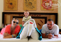 наконец то добралась до топхотелса,чтобы оставить свой отзыв о летнем отдыхе в отеле NUBIAN VILLAGE! ездили отдыхать с 22 мая по 5 июня с друзьями и детьми! в египте не первый раз,поэтому для нас все не ново) отель не плохой, мы любим жить в бунгало,поэтому и выбрали этот отель!!!!! нам дали самое ближнее бунгало к бассейнам и входу,расположение его очень хороше,шума с бассейна не слышно,и идти до ресторана и выхода недалеко,также как и до моря тоже!!!!уборка была нормальная,убирали каждый день,не скажу что каждый день мыли полы,но фигурок нам наделывали постонно! бассейны в отеле шикарные,как для детей ,так и для взрослых,красива большая и зеленая территория!очень люблю зеленые отели!!! анимация была хорошая,проводилась и аквааэробика,и для детей всякая развлекуха,вечернее шоу,детские дискатеки!от аниматоров большой выбор предложений! ходили на пенную вечеринку,также предлагали сьездить на дискатеки в хард рок кафе и другие отели!!!! по поводу еды все отлично,мнгие жаловались ,что еды не хватает,да ее быстро разбирают,но всегда несут новую,и она всегда есть,мы специально не ходили есть в первом потоке ,к открытию ресторана,а ходили последние,ни очередей,еда вся есть,очень все вкусно,выбор огромный,и морепродукты и мясо,пиццы паста,отдельно стоит стол с детской едой,даже есть зона для маленьких детей!!!! отношение персонала хорошее,только официант в баре у главного бассейна,немного обнаглел к концу,и если не дашь доллар ,уже ничего делать не хотел,подпортил только он впечатление о персонале! расскажу теперь о пляже,вот пляж действительно никакой,или ходить плавать с пантона,или чупахаться в лужке,за все 13 дней мы нормально искупались всего три раза,был хороший прилив!!!!!!!но мы честно много времени у бассейнов проводили и впринципи нам не очень подпортил пляж общее впечатление об отеле!!!!!темболее это же шарм,там кораллы везде,мы были готовы к этому! но если вы хотите не вылезать с моря то я не советовала бы тогда этот отель!!!! мы ездили за год до этого в лагуну виста гарден,там вот действительно был хороший заход,с детьми там мелковато,но мой бегал басиком и сам барахтался в воде,я даже не переживала!!!! хотя он находился чуть дальше набиана!!тоже в набке! вообщем отдыхом своим мы остались довольны!! и пожалуй единственный минус этого отеля это заход в море!!!! так что кому оно важно,то вам не в этот отель!
