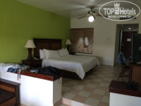 Junior Suit Elite Club (правда чтобы он всё таки соответствовал своей категории мне пришлось немного побыть в роли сантехника и затем электрика))) ну и пусть, за то кому то не придётся ))) ) Огромный, просторный практически с прямым видом на океан и выходом к нему. В номере: халаты, тапочек и пляжных полотенец не оказалось - хотя д.б. быть - два звонка и вуаля(заметьте два звонка, 4 ка же всё таки ;) ) набор полотенец, фен, утюг и гладильная доска, зонт, сейф(бесплатный), 32" ЖК TV LG и в приложение 2 русскоязычных тв канала, к тому же сквозь рябь показывал даже канал для взрослых ))))))) . Что касается минибара ( пополняется бесплатно каждый день, а хотите и не раз в день ) - вода не газированная, затем кола, спрайт, яблочный сок, пиво 2 баночки по 0,33 , кофе, сахар, кофеварка, чипсы, ведерко для льда, пару бокалов и пару чашек для чаепития. Приветственную бутылочку рома и канапе принесли перед сном . В ванной: шампунь, кондиционер, гель для душа, дентал набор (зубная щетка, паста, зубная нить), соль и пена для ванны, мыло, набор для бритья. Кондиционер и потолочный вентилятор. Что касается интерьера: да, не новое...да, есть потертости и т.п. да, на балконе мебель не такая как в Паласе....но я в 4*, а не в 5* и к тому же не в Европе. Просто не замечал этого. Постельное бельё идеальное, полотенчики все беленькие, всё протиралось чистилось и т.п. Но вот что касается зеркал, лучше нашей горничной было их не трогать - разводы, приходилось салфеткой за ней дорабатывать))))