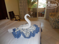 Приехали в отель после обеда. Сначала выделили номер рядом со стройплощадкой. Номер грязный, с неработающей сантехникой, «обгрызанным» ковриком у кровати. У входа в номер стояли строительные леса и вход в номер преграждали доски от этих лесов. Хорошее до этого настроение тут-же ухудшилось: ведь заселение в этот номер нам показалось простым издевательством над нами!!! После отказа от номера и доплаты на ресепшене в 20 долларов, которую оформили официально нас поселили в достаточно хороший и уютный номер с прекрасным видом на бассейн. В номере убирались почти ежедневно, но поверхностно, не отодвигая тумбочек, просто для вида подметая пол и меняя полотенца и принадлежности. Вода из крана душевой шла прохладная, что впрочем не доставляло особых неудобств, благо на улице было тепло.