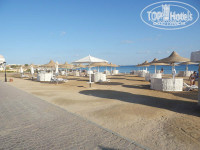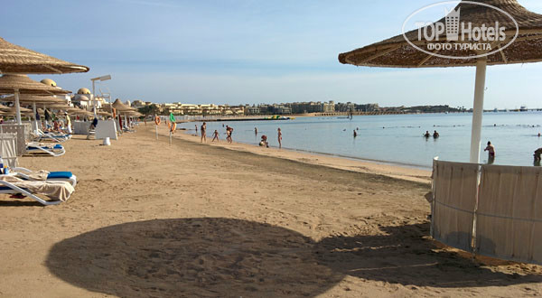 На пляже хороший и чистый песочек. Вход в море хороший, глубина не сразу наступает. На пляже рядом с лежаками стоят заслонки от ветра. Но их не так много. Хотелось чтобы их количество увеличили. Т.к. лежать просто на лежаке без заслонки нереально - ветер пронизывающий. За те 10 дней, которых я пробыла в отеле всего 3 дня был штиль, всё остальное время дул ветер.