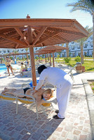 Нас с вечера предупредили, что после завтрака у нас встреча с гидом. Обязательно нужно быть на это встрече. Мы сначала думали, что нам будут предлагать экскурсии. Не без этого конечно, но гид рассказала нам очень полезную информацию о порядках в стране. По возможности ни с кем не ссорится, всем улыбаться, не болеть (это дорогое удовольствие), по ночам одному не ходить, без страховки на экскурсии не ездить и далее. После ознакомительной и немного утомительной беседы решили позагорать возле бассейна и узнать, в какой стороне море, как до него добраться. Долго нам не пришлось искать. К нам подошёл работник спа салона и настойчиво начал предлагать свои услуги. Первый сеанс массажа бесплатно. Бесплатно, так бесплатно, что отказываться. Заодно он рассказал нам, что где находится. Массаж делала арабская тётушка. Весь обслуживающий персонал мужчины, поэтому я удивилась, увидев хотя бы одну арабскую женщину.