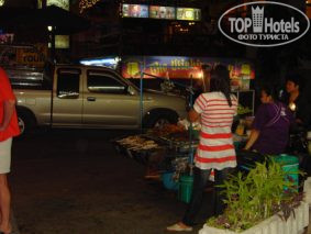 Теперь об отеле. Написано о нем многое. Потолки, ступени к морю все это ерунда. Если бы не ступени все бы стали ленивыми пингвинами. Тихий, семейный отель. Стоит в стороне от суеты. Развлечений нет, по вечерам в фойе лабает тапер или девчушка на народном инструменте. Отель на вид чистенький (почему на вид расскажу позднее), уборка и смена белья ежедневная, персонал не надоедает, пляжные полотенца всегда в наличии. Стандартные номера без балконов. Завтраки конечно не Египетские или Турецкие где все включено, но вполне приемлемые, во всяком случае фруктов не жалеют. Не видел ни одной исхудавшей физиономии. Брать ужины в отеле нет смысла, в любом ресторанчике за углом и дешевле, и разнообразнее. Не рекомендую покупать жареные мясные продукты у торговцев на мотоциклах (фото 1). Блины, которые жарят на глазах, брал, вкусно, без последствий. Взял с дуру курицу, так даже виски Меконг не помогли, хорошо, что с собой была куча всяких вкусных таблеток. Не дали сесть на «белого друга». (Кстати, если хотите вкусить тайский гастрономический колорит посетите местную кафешку Муката «Эрой Джап» (на углу ул.Сукхумвит и ул.Северная), типа наших Елок Палок, где за 120 бат с человека, напитки дополнительно, можно брать все, что хотите и готовить на свой вкус. Нам понравилось, но предупреждаю, что санитария сомнительная, поэтому запаситесь виски или ромом, там не продают). В отеле, в основном, русские, немцы и китайцы. Везде пишут, что китайцы шумные. Брехня. Их не видно и не слышно. А орут наши да немчура, обожравшись до бесчувствия «синьки». При этом изъясняются без использования нормативной лексики, думая что их не понимают. Но есть ряд причин по которым мы в этот отель больше не поедем: 1. В ряде номеров и не только в нашем (мы были в начале в 320) живут «милые насекомые», которых мы именуем клопами (фото 2 и 3), и только после долгих разборок и нервотрепок с руководством отеля, нас переселили в номер Де люкс (видно, чтоб заткнулись), правда с видом на стройку, что тем не менее значительно лучше чем кормить своей кровушкой этих тварей. Тем более в номер приходишь только спать. 2. Правильно уже писали, что отель стоит в стороне от дорог, где проходят маршрутные такси по цене 10 бат с носа. Здесь, чтоб проехать 10 мин. до центра, будете платить в один конец 100 бат, а ночью могут запросить и 150, и не поторгуешься, торгуются в основном на вещевых рынках и пляжные торговцы, можно скинуть в 2 – 3 раза от заявленной цены. (В качестве лирического отступления – говорят, что Таиланд страна улыбок, это верно до той поры пока Вы со всем соглашаетесь, только скажете что-то против или начинаете торговаться, тут же раздражение и злость, так как они не понимают как это «большие и толстые кошельки» могут перечить). 3. Не понравился пляж. То что вода мутная – ерунда, она в Паттайе везде такая, здесь может как раз и чище, а в прозрачной воде купаются на островах. В результате отливов вода уходит далеко от берега и всю водную технику братья аборигены таскают старым вонючим трактором, типа фармазон (фото 4), так что если вынырнете в пятне соляры не удивляйтесь. Пляж практически не убирается.