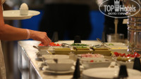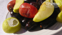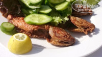 Были отличного качества овощи, рыба. Мясо давно исключил из потребления, рыба была 3х вариантов, белая. Знал про это заранее-взял с собой красной икры-добирал нужный белок перед обедом, пол-литровая банка стояла спокойно в моем номере в холодильнике. хватило вполне.