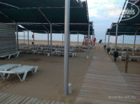 Пляж отеля очень большой, широкий, лежаков много. Матрасы на ночь складывают и накрывают плёнкой, поэтому даже ранним утром они сухие. Лежаки можно ставить под навесами, можно вынести на солнце, свободного места на пляже очень много. Единственное, хорошо бы, чтобы сделали деревянный настил до входа в воду, по горячему песку идти до воды проблематично). Я приходила купаться рано утром, около 6 и видела, как каждый день отельный пляж тщательно убирали, ещё бы отдыхающие бросали мусор в положенные места.