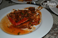 Питание достаточно разнообразное.В отеле несколько ресторанов соединённых между собой.Мы занимали столик в одном(места были всегда и везде) и посещали все,брали в каждом что-нибудь.Основные блюда готовят при тебе.Нам очень нравилось в немецком и итальянском.Очень вкусные супы-пюре.Обедали мы чаще всего в ресторане на пляже,там очень вкусная рыба и пицца,которые тоже готовят при тебе.А вообще очень много зелени,овощей.По утрам на каждом углу готовят яичницу с разными добавками и омлеты.Свежевыжатые соки три вида-гуава,банан и дыня.А свежая выпечка....мммм...никогда не забуду,от запаха круассанов мы просыпались и бежали завтракать,это было чудо)))Вообще еда там всегда и везде,где-то блинчики пекут,где-то пончики,мороженное в любом количестве,проголодаться просто нереально))За питание поставила пять с минусом потому что во всех ресторанах,практически все блюда и даже рыбные были со специями. Вечерами после ужина мы отправлялись пить вкусный кофе в кофе-бар,а ещё там давали вкуснющие чизкейк и тирамису.(Кстати там же и вай-фай).