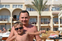 Отдыхали в этом отеле с 1 по 10 октября 2014 года.(только что" руки дошли" до отзыва:-)) в Египте во второй раз.Ехали две семьи.Отель выбирали тщательно,с помощью сайта Топ Хотелс.За неделю до вылета я связалась с представителем отеля Верой Румянцевой и с учетом моих пожеланий для нас был забронирован номер.(что было очень приятно).Летели трансаэро.Вылет был без задержек.Прилетели мы в 21 час по их времени,встретили нас в аэропорту представители туроператора библиоглобус,(в наш отель отвезли три автобуса туристов!).На рецепшене раздали анкеты,я была удивлена,что наша анкета была уже заполнена и даже с указанием номера комнаты.Минут через 20 нам выдали ключи и отправили ужинать(время было почти 11 ночи),наши чемоданы мы оставили на рецепшене.Поужинав,работник отеля чемоданы наши загрузил на минимобиль,нас посадили поверх чемоданов и отвёз в номер,проводив до двери.Пока ехали до номера мы обратили внимание,что территория отеля ОГРОМНАЯ.....Не разбирая чемоданов отправились изучать территорию,куча бассейнов,баров,корпусов,вообщем мы заблудились :-)пока искали дорогу в свой корпус встретили ещё парочку таких же(видимо с нашего самолёта))))Проводил нас до номера работник отеля)))