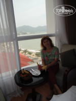 Отдыхали в отеле с 20 по 31 января. По приезду в отель нам подали напитки и быстро зарегистрировали. Хотя мы прибыли в отель раньше времени заселения в номера (14 часов) где-то около 11-12 часов нам сразу предоставили номер. Номер мы заказывали "Делюкс". Дали на 5 этаже с видом на море. В нашем номере в сан.узле был душ, у друзей ванна. Для ребенка до 6 лет не предоставляется отдельное спальное место. Нашему 13-ти летнему ребенку поставили раскладушку. По приезду в номере стояли фрукты как комплимент от отеля. Мой день рождения пришелся на период отдыха в VDB. Было приятно получить в подарок от отеля именной тортик и фрукты с поздравительной открыткой. В номере очень уютно. Есть все необходимое. Сейф, телевизор (с 1 российским каналом), кондиционер, чайник, фен, халаты, тапочки, все душевые принадлежности (полотенца, щетки, паста, мыло, расчески, ватные палочки, пилки для ногтей, гель для душа и шампунь), чай, кофе 3 в 1 и вода в бутылках, которые дополнялись каждый день. В отеле есть этажи для курящих и некурящих. Курение только возле лифта. В отеле есть бассейн, но мы там не купались - вода холодная. Завтраки соответствуют звездности отеля. Разнообразно и вкусно. Всегда наедались. Я и муж ежедневно брали вьетнамский суп, остальное по желанию. Есть в отеле русскоговорящий персонал. Уборка в номере была ежедневная. Но не всегда качественная (крошки с пола за креслом убирать не стали). Напротив отеля пляжа нет, скорее всего из-за того, что в этом месте каменистое дно. Собственный пляж отеля находится через дорогу в метрах 300 справа от отеля (5-10 минут ходьбы). На пляже бесплатно по купону, выданному при заселении в номер, предоставляют лежак и пляжное полотенце. Если тебе не хватило лежака (их всего штук 30), то дадут тканевую подстилку для лежания на песке. На пляже неподалеку идет стройка, делали канализацию. Отдыхать не мешала. Вход в море пологий, очень хорошо для маленьких детей. Волны умеренные. Бывало, в отдельные дни, в центре Нячанга были огромные волны, невозможно зайти в море, а на нашем пляже спокойней. Люди из центра специально приезжали сюда купаться. Рядом с отелем находится остановка автобуса № 4. Можно доехать до центра города, на рынки и магазины и до острова развлечений Винперл (билет стоит 7000 донгов - около 20 рублей). Прогуляйтесь по улицам в разные стороны от отеля, найдете много кафешек, где имеется хороший выбор блюд и порции нормальные. Недалеко (около 30 мин. пешком или 2 остановки автобуса) есть рыбные рестораны, были 1 раз (кушали лобстера, крабов, креветки, гребешки). Экскурсии брали в "ЛетоТур" рядом с отелем (дешевле чем у туроператора в 2 раза и классно, дали в подарок 1.5 кг кофе в зернах), там же рядом недорогой массажный салон слепых (4-5 долларов в час)(мне понравился массаж горячими камнями). Отель рекомендую. В первую поездку в Нячанг жили в центре - шум и толкотня. Теперь с удовольствием посмотрели север Нячанга - тихо и спокойно.