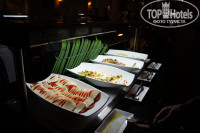 Ресторан. Открытый, в дождь закрывают пластиковые шторы. Еда находится в отдельном кондиционированном помещении внутри ресторана. По сравнению с другими отелями 5* еды кажется мало, вот честно. И только немного погодя понимаешь, что тебя все устраивает. Повара жарят на обед и ужин мясо: курица/свинина/говядина/индейка обычно два сорта, рыбу и морепродукты, есть отдельный на макаронах, и один повар на ужин готовит китайскую кухню WOK (мясо каждый день меняется в пределах разумного), есть пицца и 1 блюдо от шефа на ужин (тунец, индейка или что-то подобное). Детский стол радовал всех любителей картофеля фри, который разбирался не только детьми. Суши, как и везде в Доминикане не привлекли моего внимания. Они не вкусные )