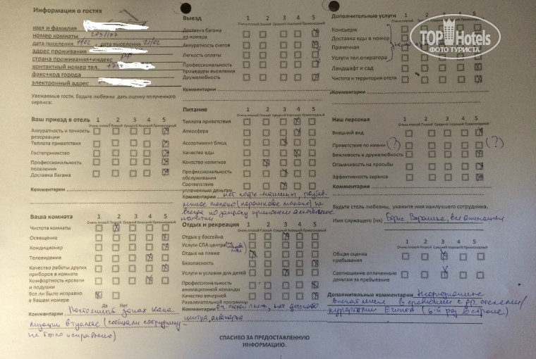 P.S. - при выписке из отеля выдается для заполнения анкета. Прилагаю ту, что заполнил я.