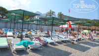 -пляж через дорогу, но нас не напрягало, мы рады были прогуляться 7 минут до моря. пляж у отеля свой, много лежаков, мы никогда не оставались без них. бар на пляже. напитки начиная от пива и заканчивая любыми крепкими в неограниченном количестве. пляж-крупная галька, местами даже валуны. но часто их расчищают. в воде в основном нормально. мы еще ходили на дикий пляж, это метров 800 от пляжа Сельчукхана слева, там мелкая галька, скалы, отличный фон для фоток, но нет тенька.