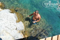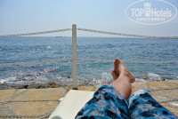 Самое живописное место на побережье. Очень спокойно. Очень много зелени (в тени деревьев не жарко в полдень). Есть пляж в бухте для ребенка с кристально чистой водой, песком (дочка маленькая боялась купаться на волнах на большом пляже). Есть пляж на скалах, для меня (можно понырять). Гулять по территории, сидеть за столиком с бокалом на скале - лучший кайф, уж очень красивое место. С отелями, которые расположены вдоль трассы - не сравнить. В мае 2015 еду снова.