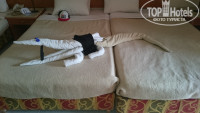 Номер нам дали хороший - 3-х местный на втором этаже с видом на бассейн. Заселенность отеля в первые дни была совсем маленькая, но уже к нашему отъезду намного увеличилось количество отдыхающих; в основном все русские, как будто из России и не уезжали.
