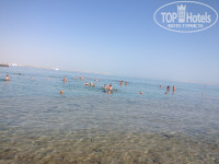 На пляж в основном ходили пешком, но можно и на автобусе (каждые полчаса от Топаза отъезжает) или на паровозике Там-Там (его расписание висит на рецепшн в Парадайзе). Идти недалеко, минут 15 не торопясь. Пляж огромный, мы ходили на центральную его часть – там, где анимация и бар Sea Rock. В баре можно взять лепешки с начинкой из печени/или каких-то шариков с овощами, также в баре был картофель и паста с топингами, ну и напитки (пиво, крепкие, вода, газировка, чай, кофе). Кстати, корзины от ветра спасают хорошо, поэтому некоторые брали по 2 корзины и, если прийти поздно на пляж, то могло и не хватить (это я про центральный пляж). Полотенца пляжные нужно получать на территории Топаза.